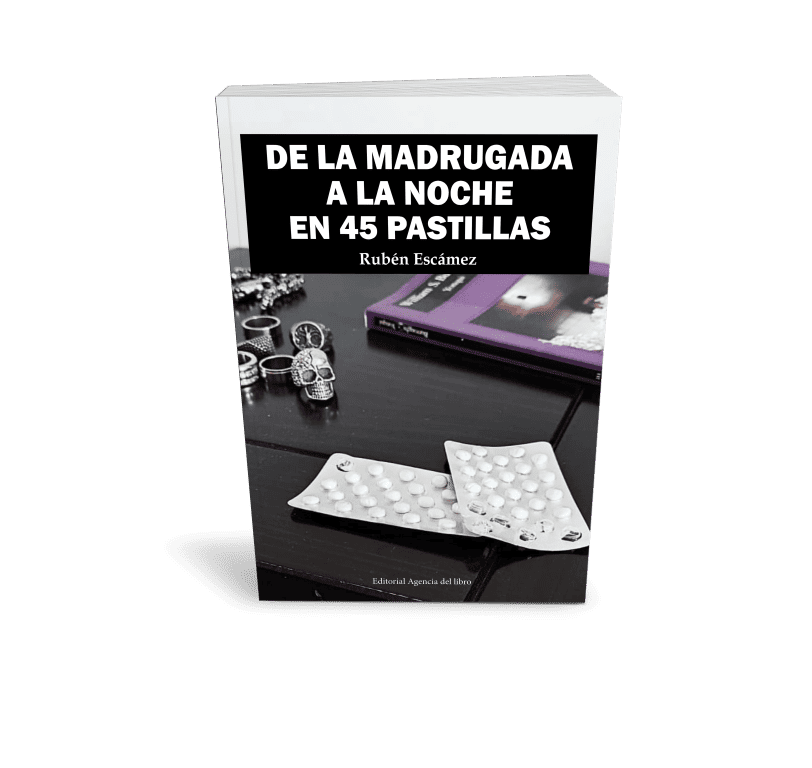 De la madrugada a la noche en 45 pastillas es un poemario escrito en dos partes muy diferenciadas. Empieza con las pastillas de madrugada, en las que la luz del alba ilumina una serie de poemas, sobre arte, amor y sexo… vida. La segunda parte, las pastillas de noche, es una sucesión de poemas escritos desde la oscuridad, el negro, el abismo… la depresión, que es lo más parecido a la muerte.